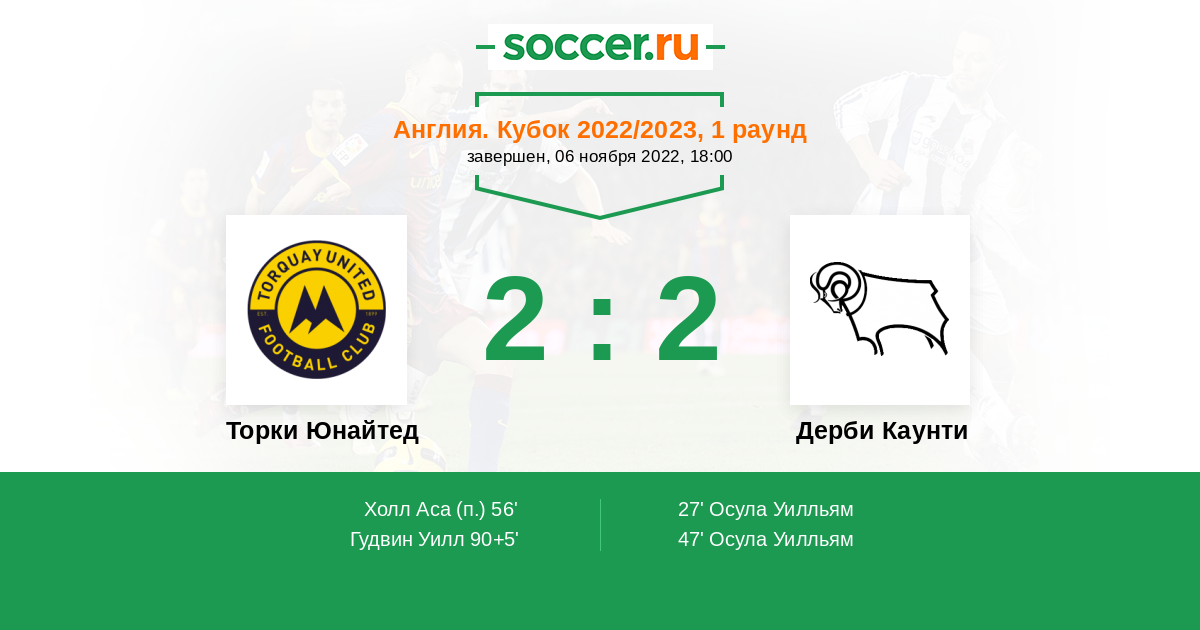 Протокол матча Торки Юнайтед против Дерби Каунти