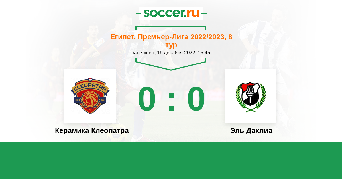 Протокол матча Керамика Клеопатра против Эль Дахлиа