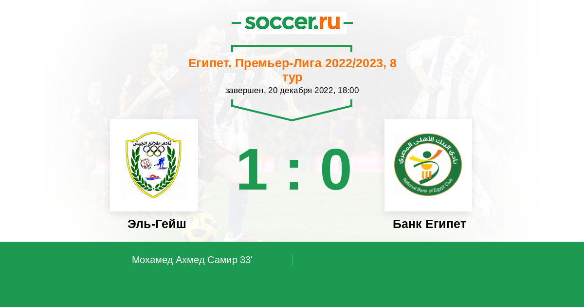 Протокол матча Эль-Гейш против Банк Египет