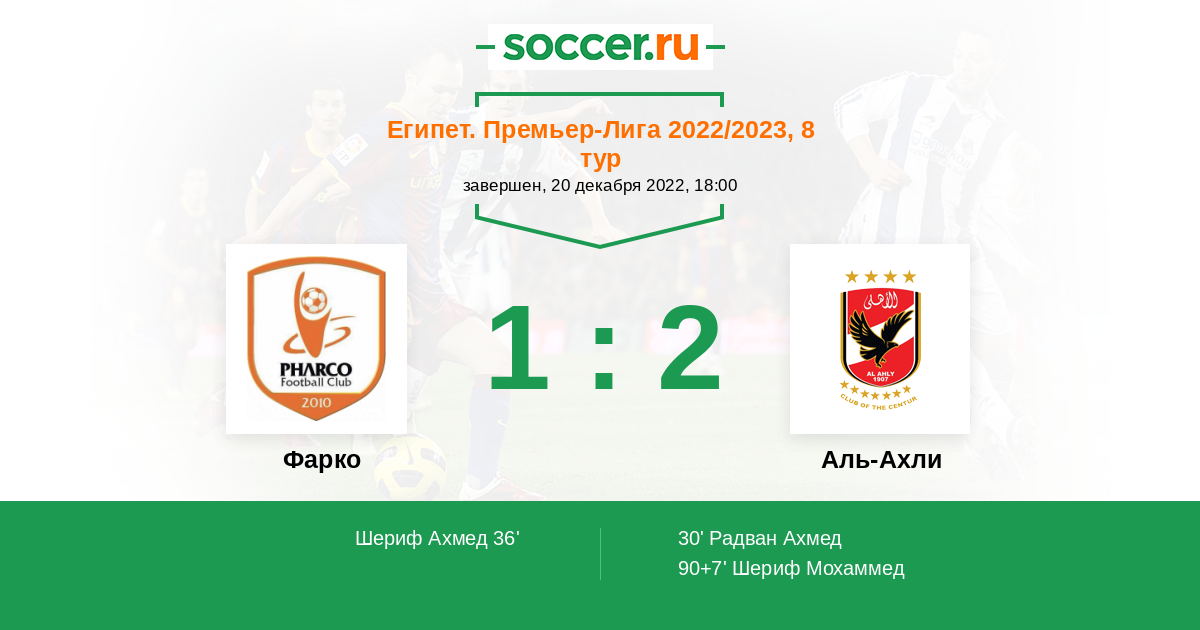 36' (1:1) Шериф Ахмед (31) (Нагиб Шокри (10))