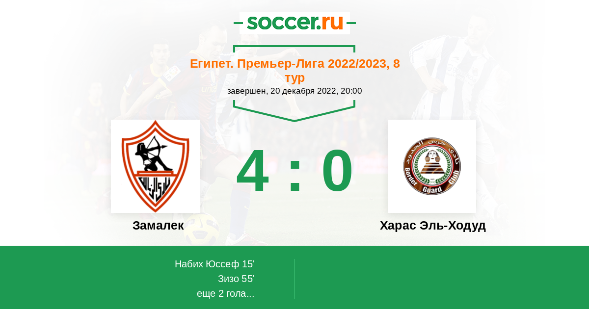 Протокол матча Замалек против Харас Эль-Ходуд