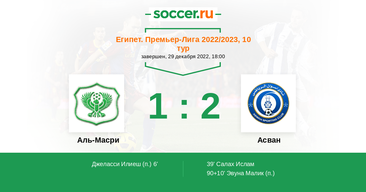 39' (1:1) Салах Ислам (30) (Белхаджи Ахмед (10))