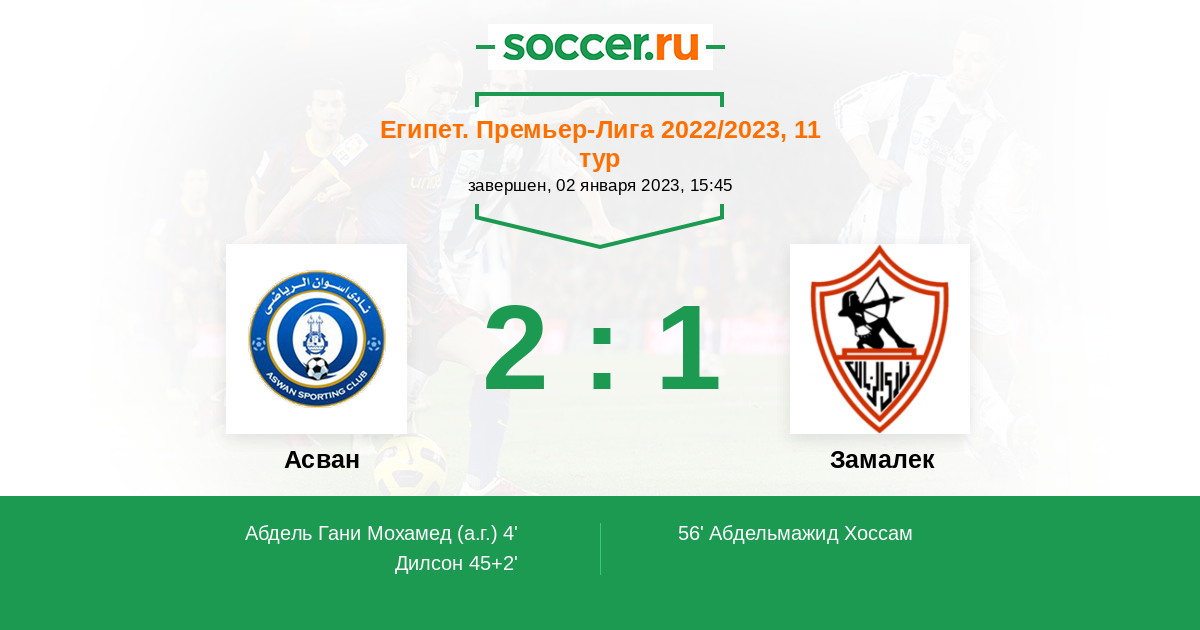 56' (2:1) Абдельмажид Хоссам (36) (Зизо (25))