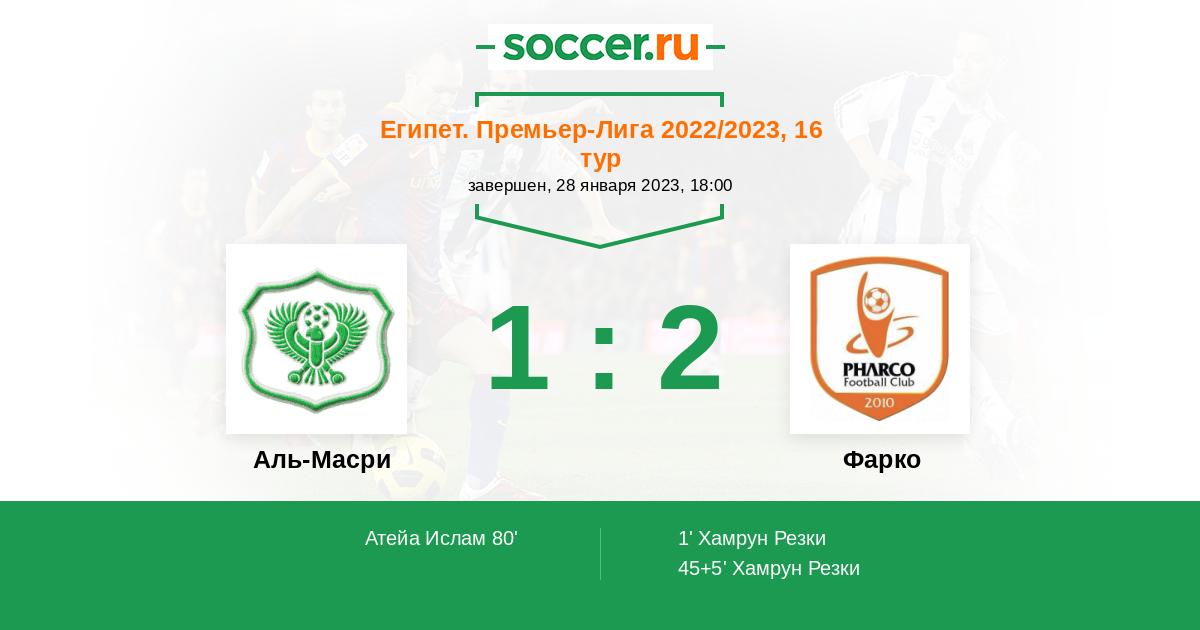 Протокол матча Аль-Масри против Фарко