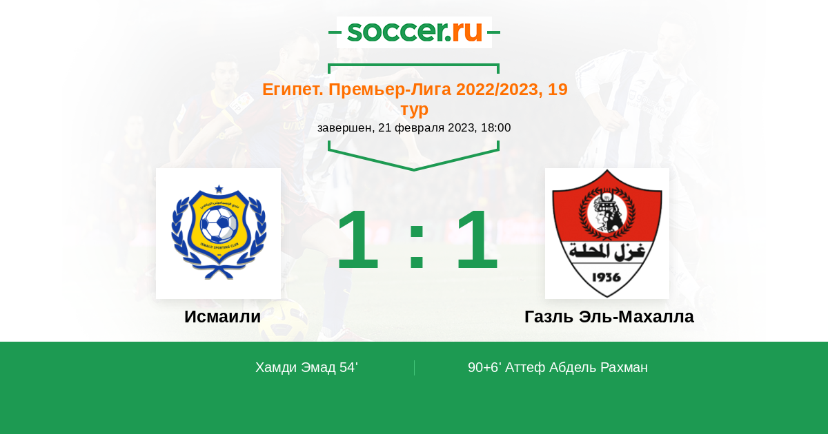 Протокол матча Исмаили против Газль Эль-Махалла