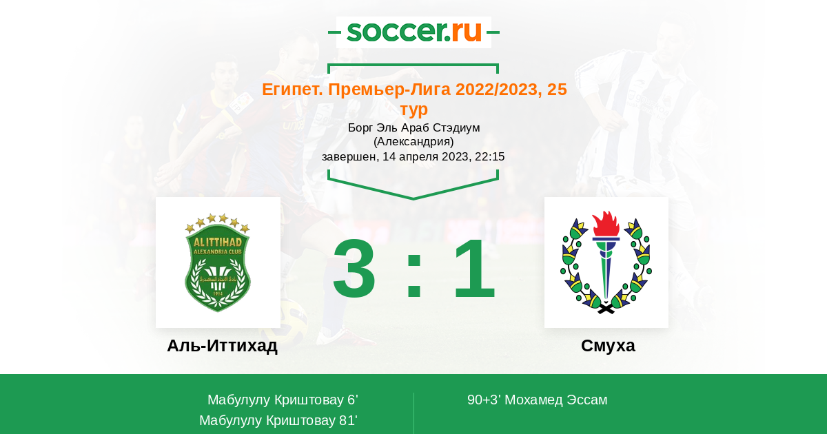 90+3' (3:1) Мохамед Эссам (15)