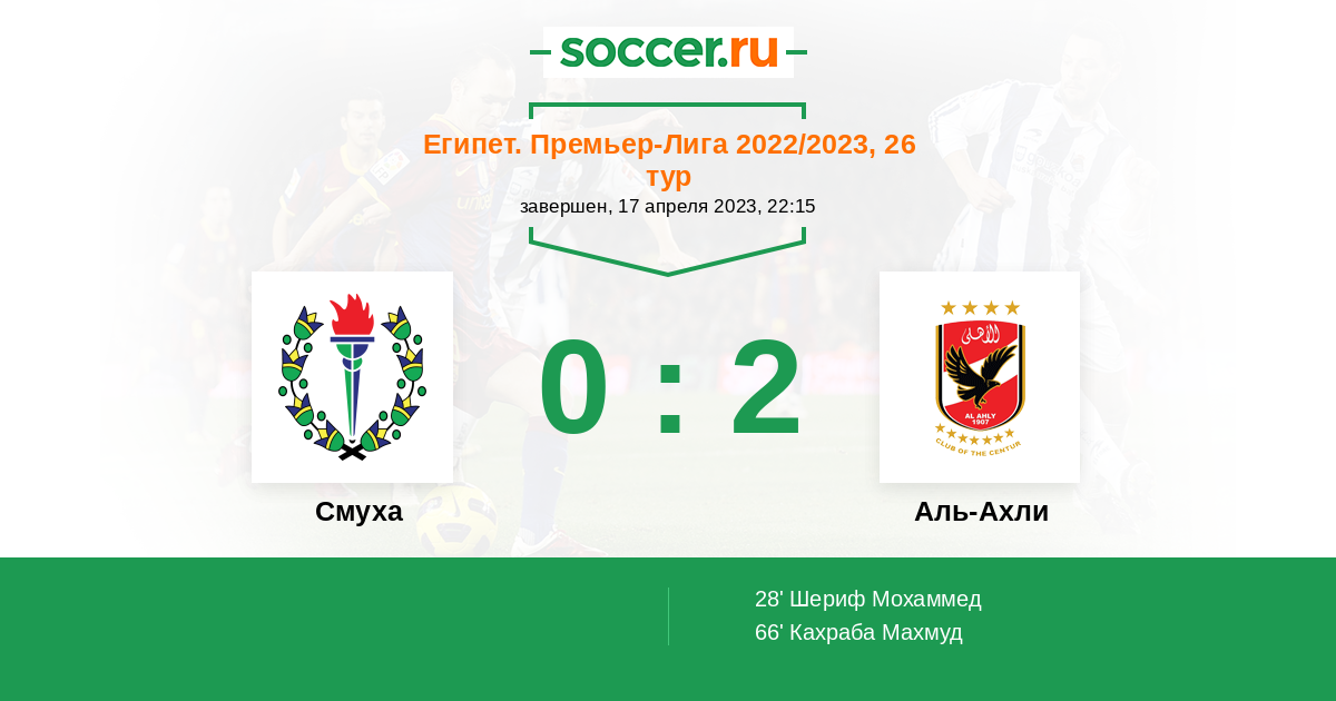Протокол матча Смуха против Аль-Ахли