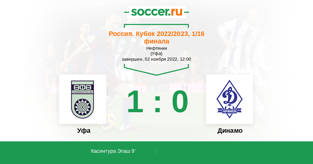 Протокол матча Уфа против Динамо Брянск