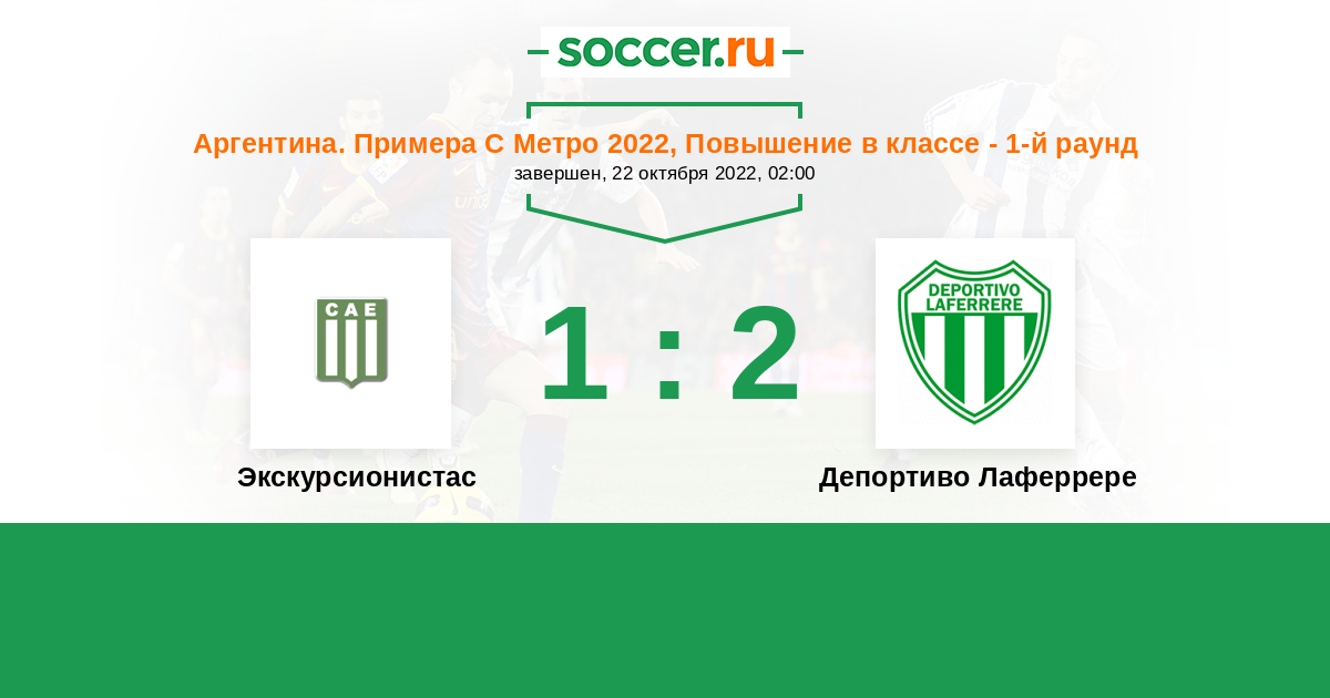 Аргентина. Примера С Метро 24.10.2021 Депортиво Лаферрере Логотип футбольный клуб Депортиво Лаферрере 2:0 Логотип футбольный клуб Экскурсионистас (Буэнос-Айрес) Экскурсионистас