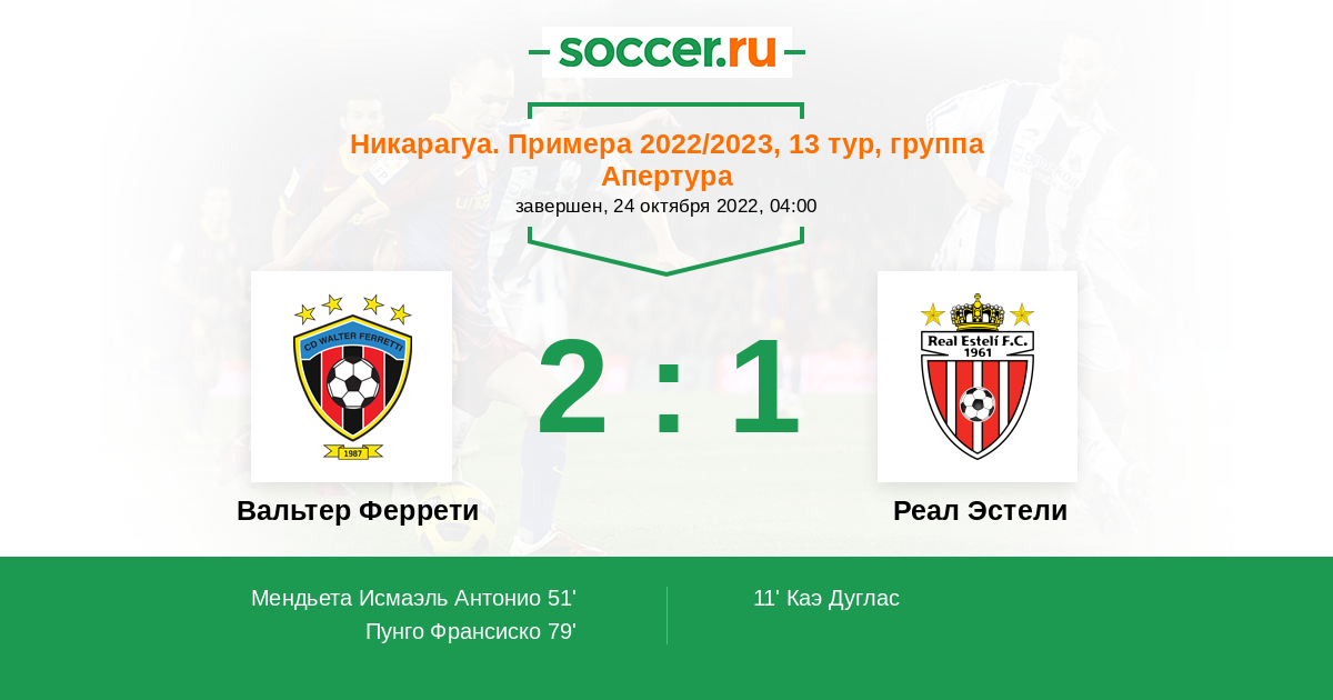 Протокол матча Вальтер Феррети против Реал Эстели
