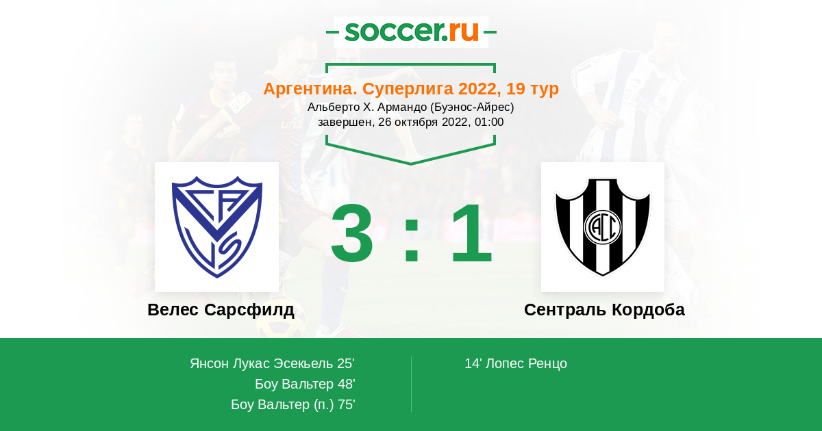 Протокол матча Велес Сарсфилд против Сентраль Кордоба