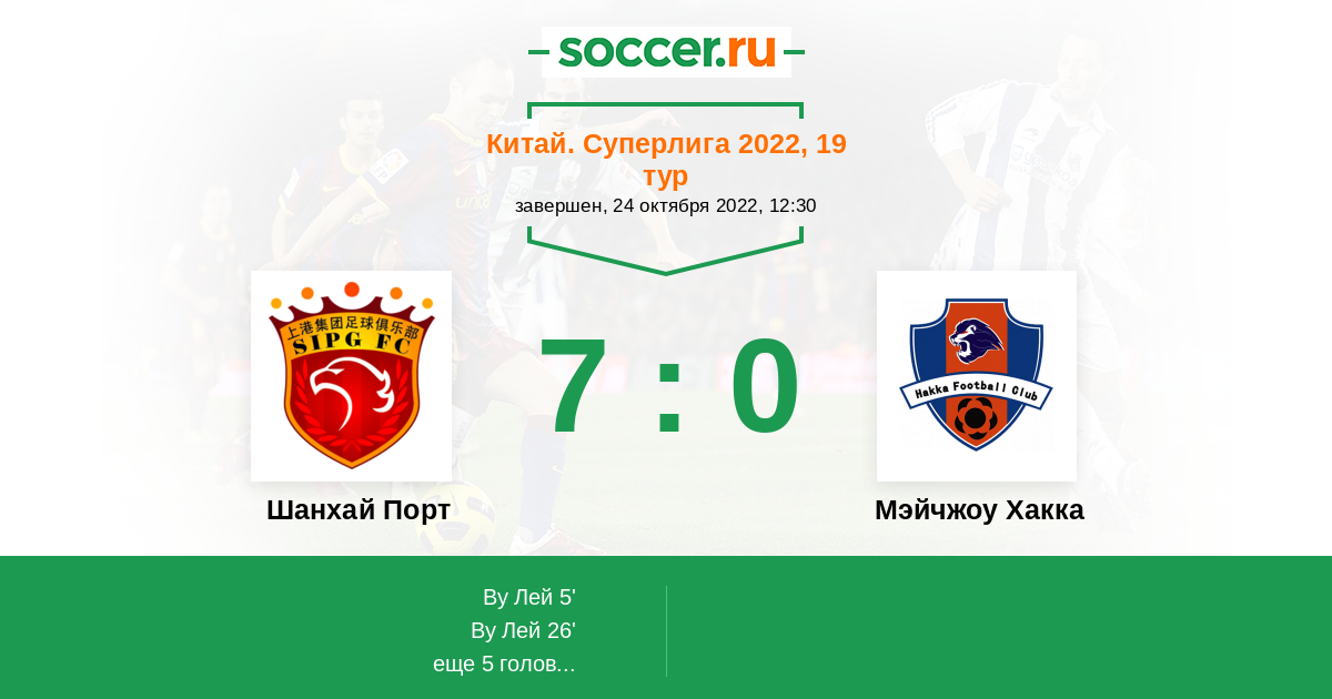 Протокол матча Шанхай Порт против Мэйчжоу Хакка