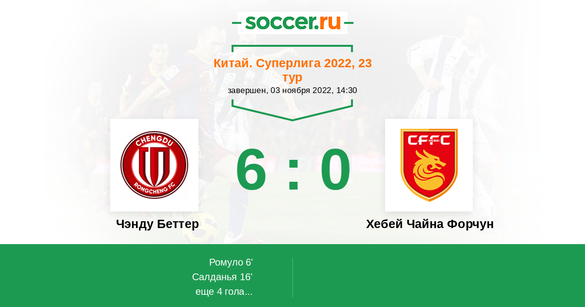 16' (2:0) Салданья (12) (Лиу Тао (26))