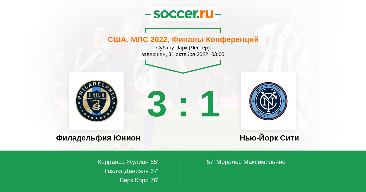 Протокол матча Филадельфия Юнион против Нью-Йорк Сити