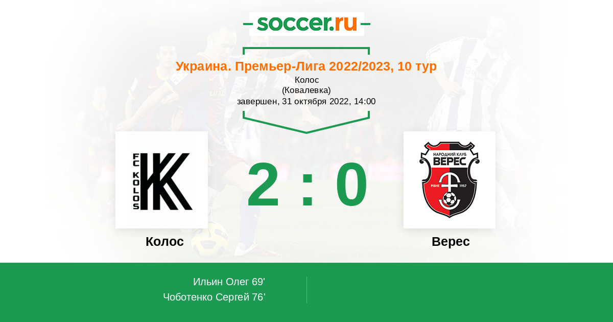 Шансы команд в этом матче практически равны. Колос уверенно набирает очки дома, не проигрывая никому. Верес - лучшая команда украинского чемпионата по игре на выезде. Много мячей забито не будет и вполне возможно сыграют в ничью.