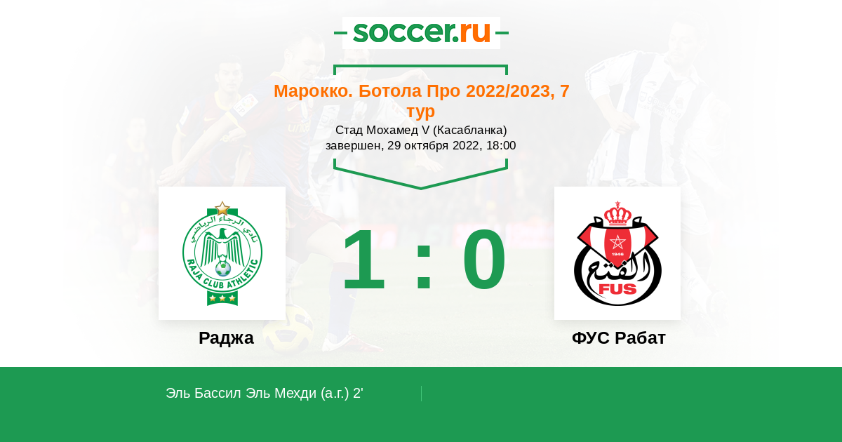 2' (1:0) Автогол Эль Бассил Эль Мехди (22)