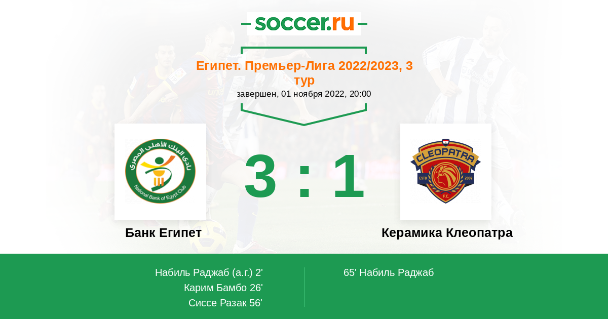 Протокол матча Банк Египет против Керамика Клеопатра