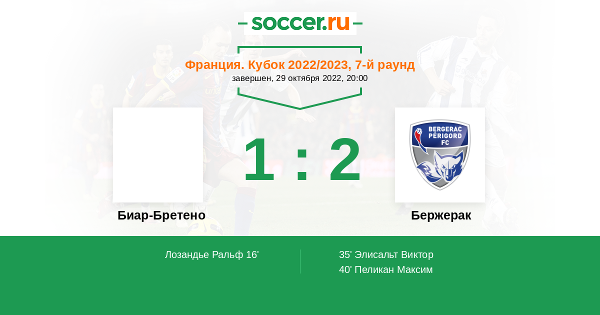 Протокол матча Биар-Бретено против Бержерак