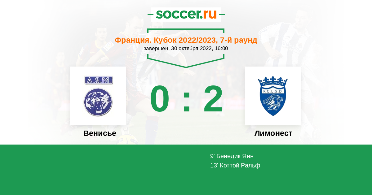 Протокол матча Венисье против Лимонест
