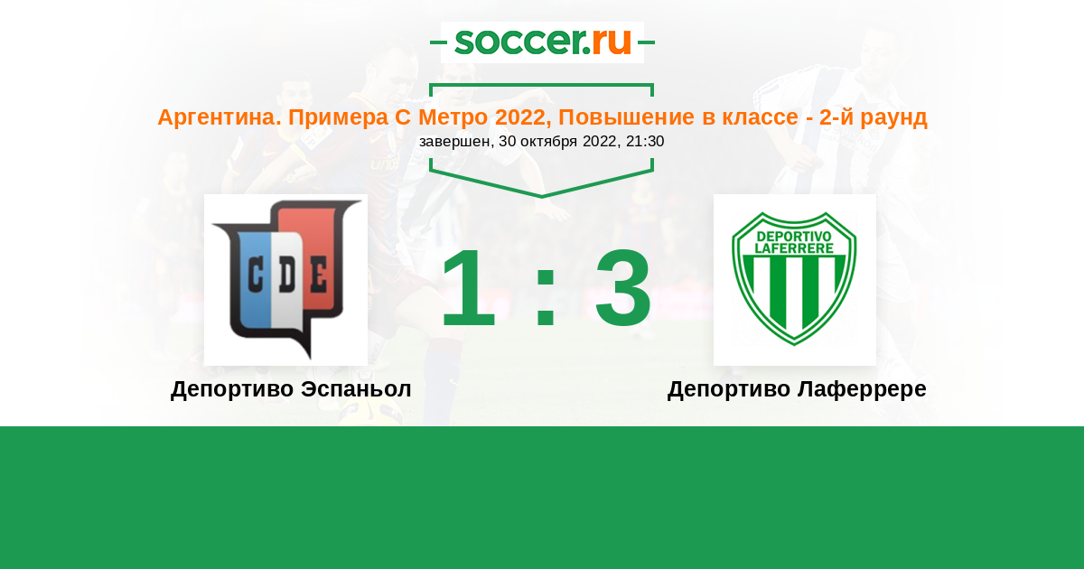 Аргентина. Примера С Метро 06.08.2022 Депортиво Лаферрере Логотип футбольный клуб Депортиво Лаферрере 0:2 Логотип футбольный клуб Депортиво Эспаньол (Буэнос-Айрес) Депортиво Эспаньол