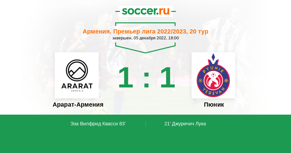 Протокол матча Арарат-Армения против Пюник