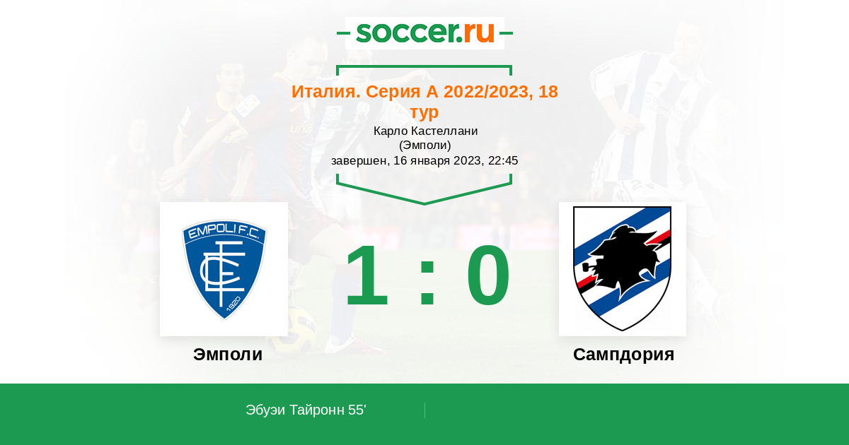 Протокол матча Эмполи против Сампдория