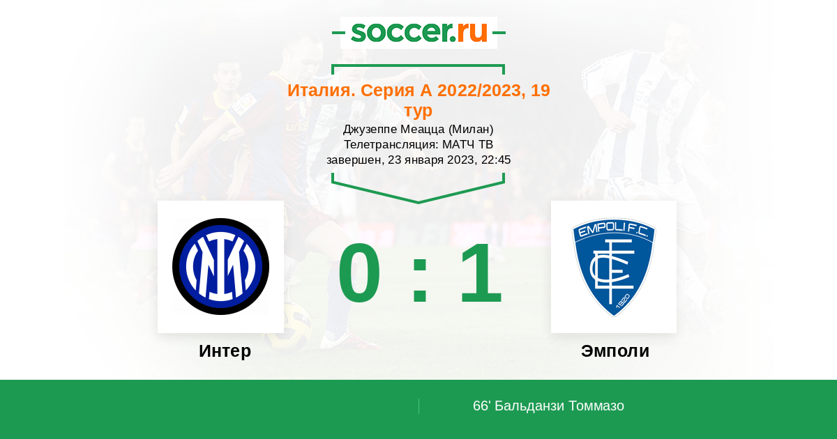 Протокол матча Интер против Эмполи