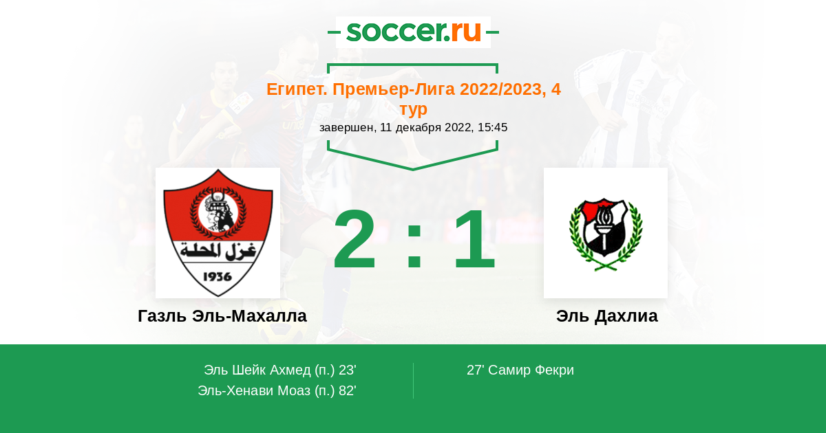Протокол матча Газль Эль-Махалла против Эль Дахлиа