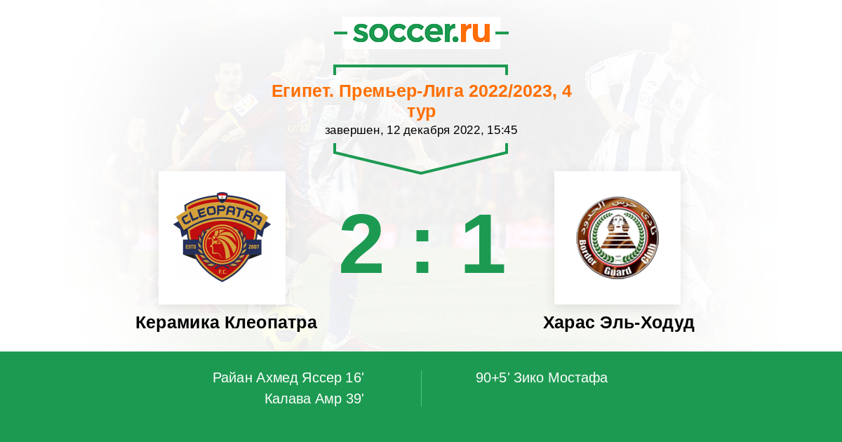 90+5' (2:1) Зико Мостафа (10) (Махмуд Рамадан (6))