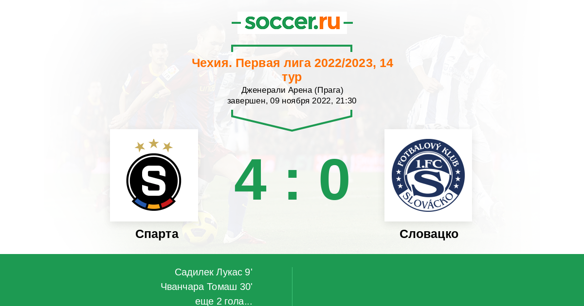 В предстоящем матче 14 - го тура чешской Первой Лиги между командами Спарта Прага и Словацко , явным фаворитом на победу является команда хозяев Спарта Прага , так как они играют лучше.