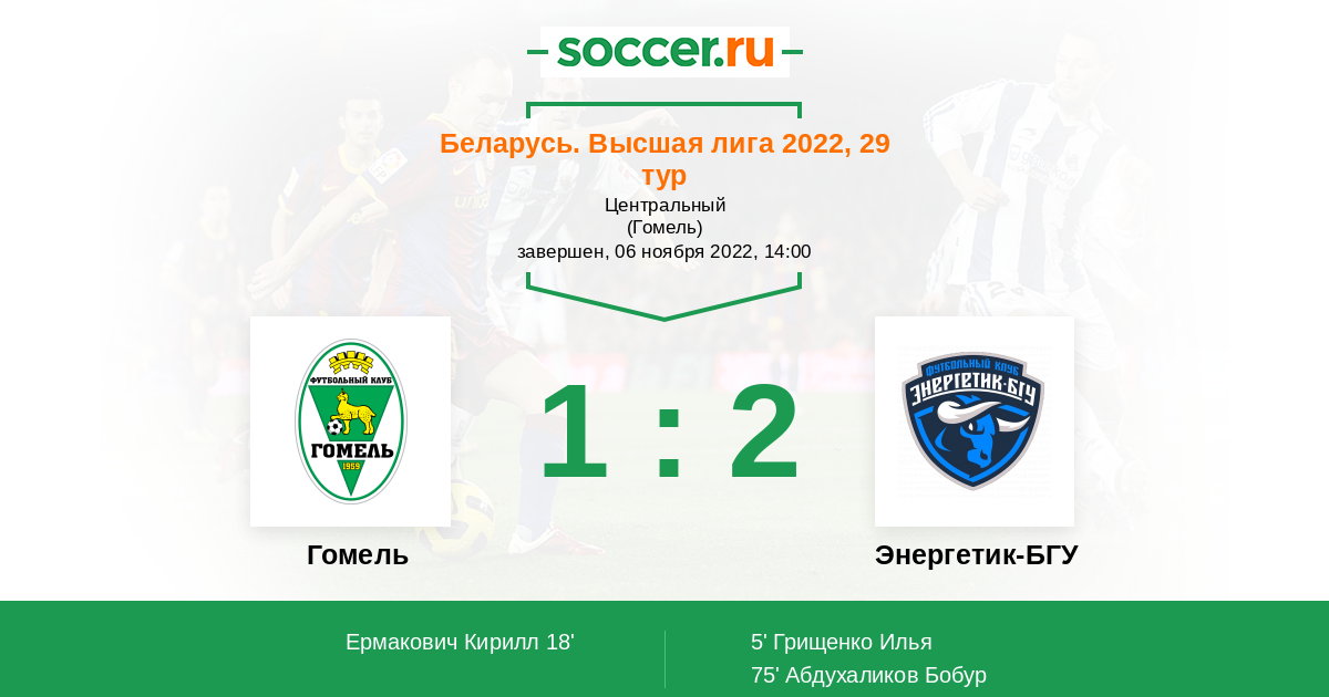 Протокол матча Гомель против Энергетик-БГУ
