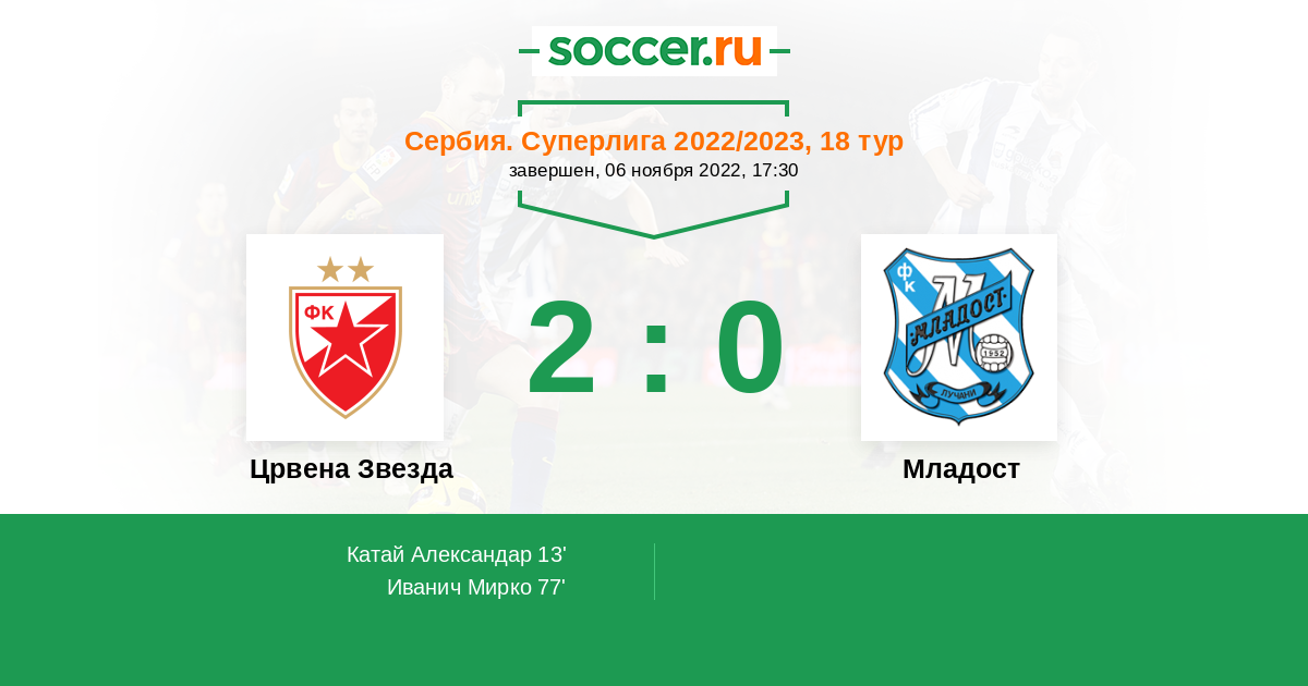 Протокол матча Црвена Звезда против Младост