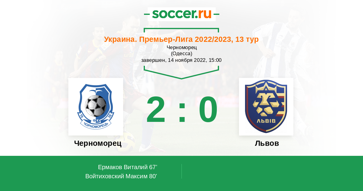 Протокол матча Черноморец против Львов
