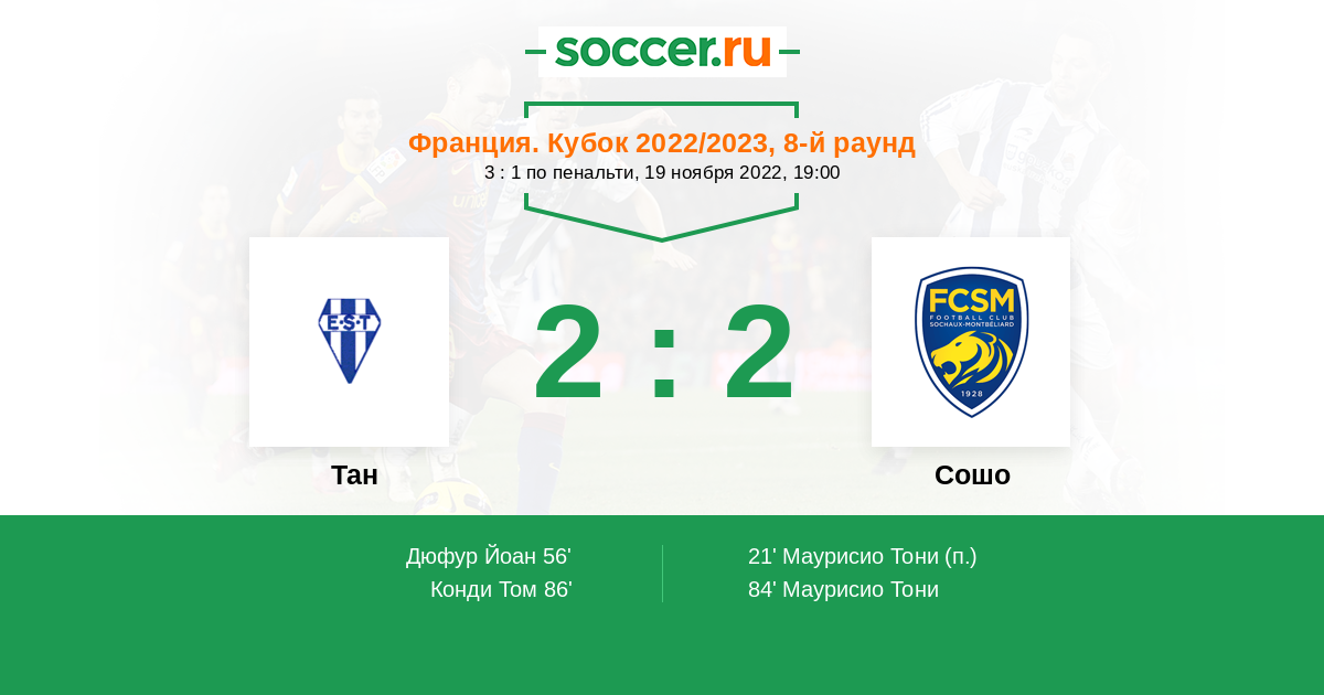 Протокол матча Тан против Сошо