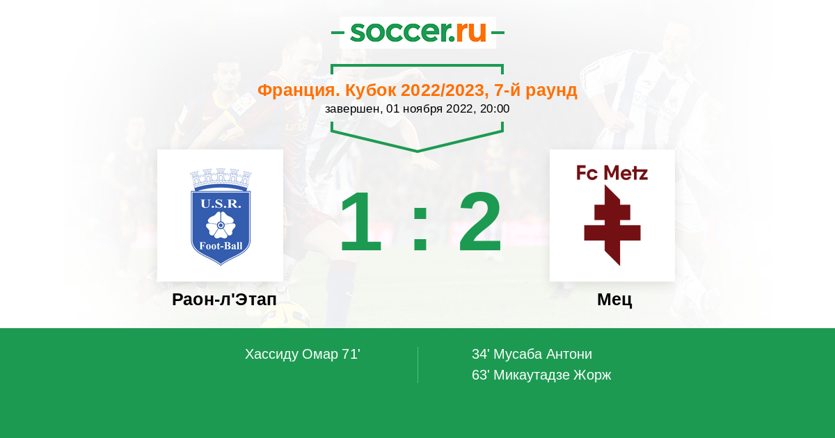 Протокол матча Раон-л'Этап против Мец