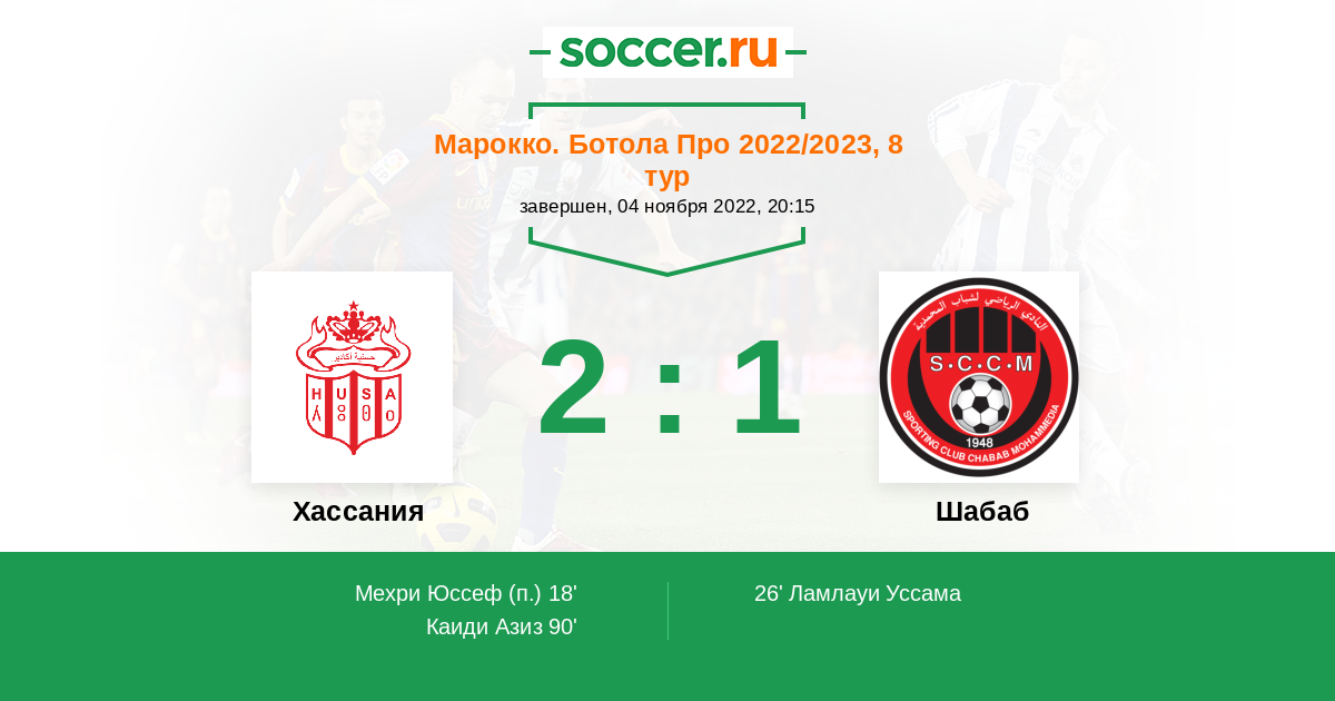 Протокол матча Хассания против Шабаб