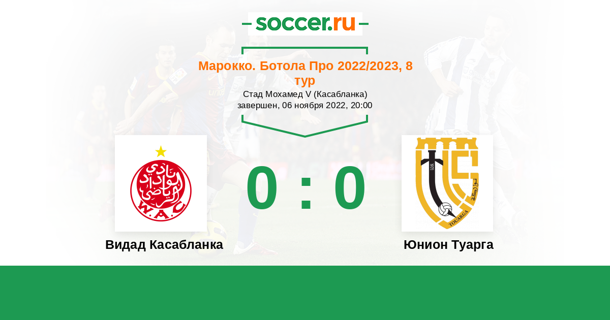 Протокол матча Видад Касабланка против Юнион Туарга