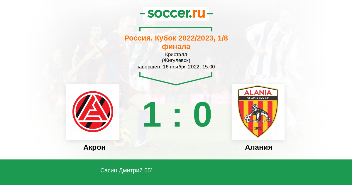 Протокол матча Акрон против Алания
