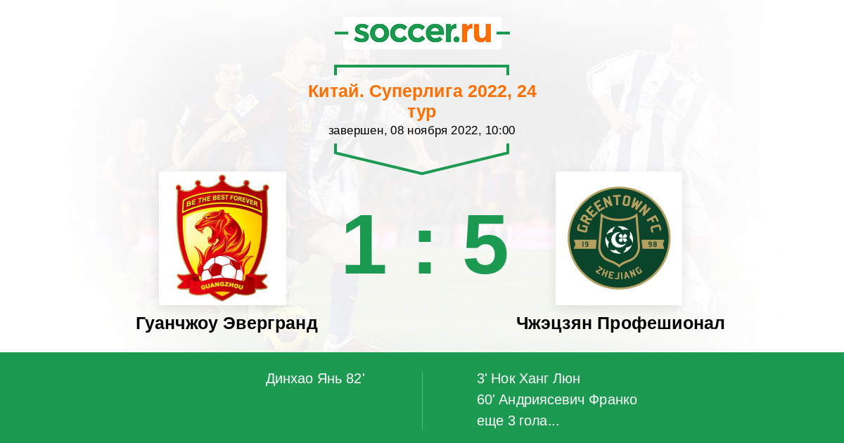 Протокол матча Гуанчжоу Эвергранд против Чжэцзян Профешионал