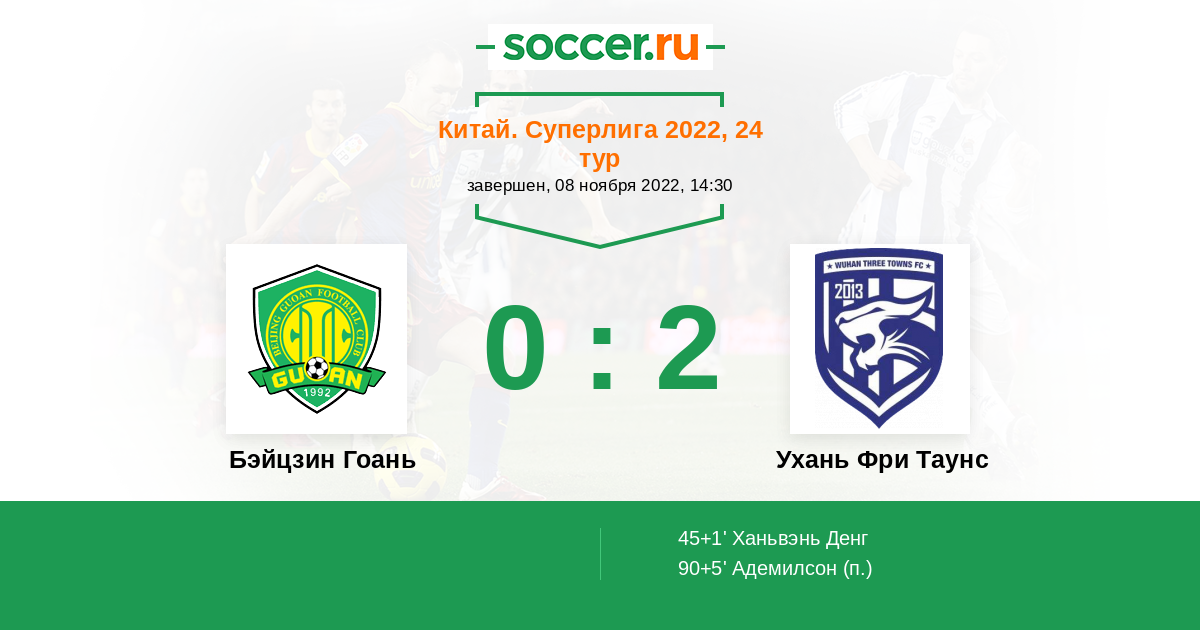 Протокол матча Бэйцзин Гоань против Ухань Фри Таунс