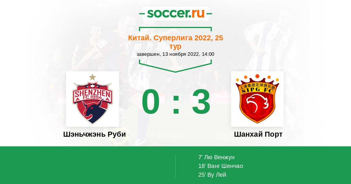 Протокол матча Шэньчжэнь Руби против Шанхай Порт