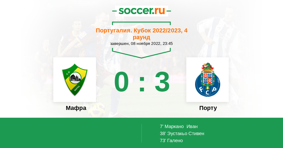 Протокол матча Мафра против Порту