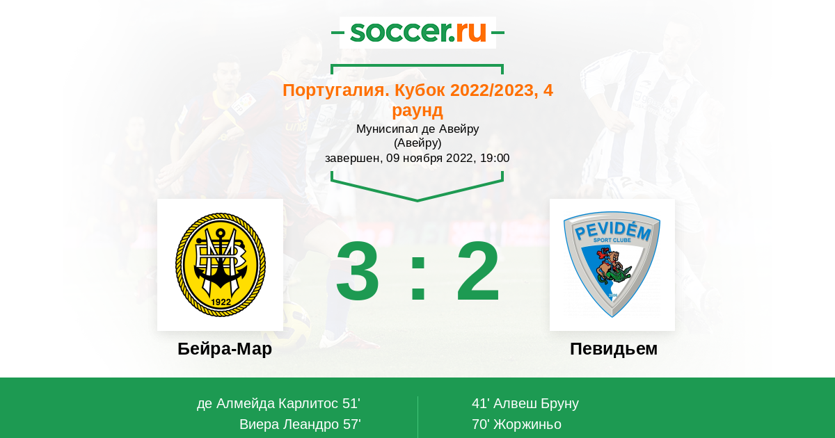 Протокол матча Бейра-Мар против Певидьем