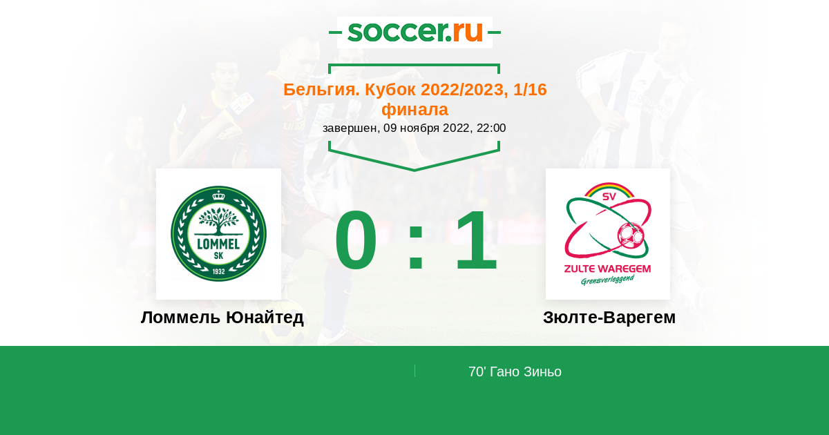 Протокол матча Ломмель Юнайтед против Зюлте-Варегем