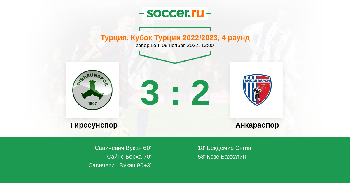 Протокол матча Гиресунспор против Анкараспор