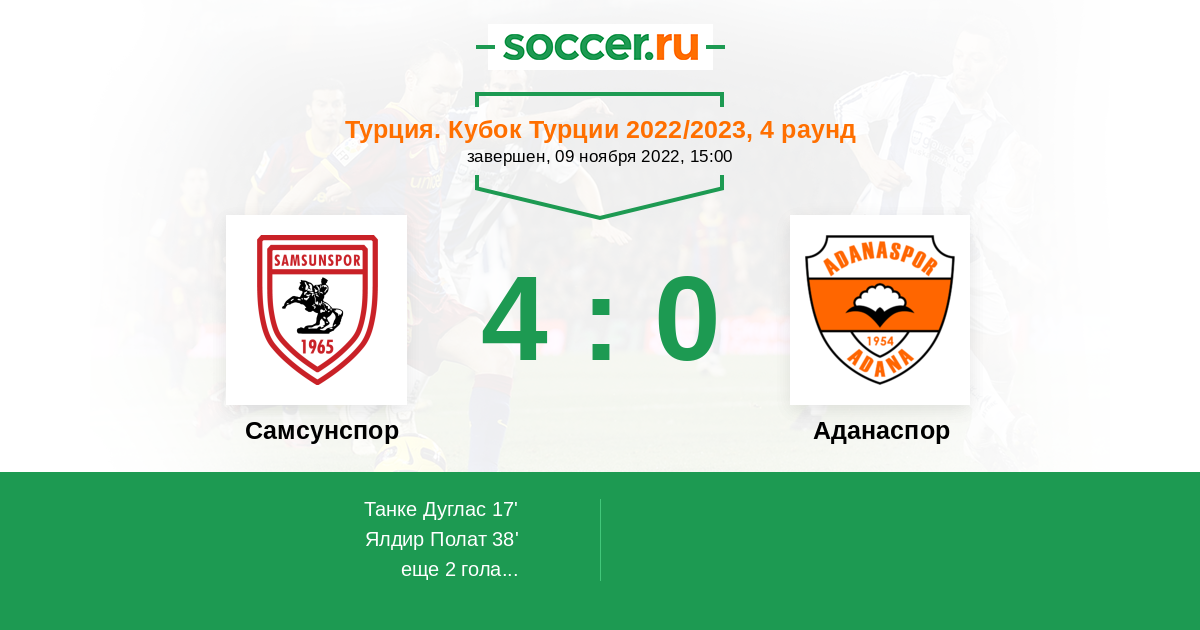 Протокол матча Самсунспор против Аданаспор