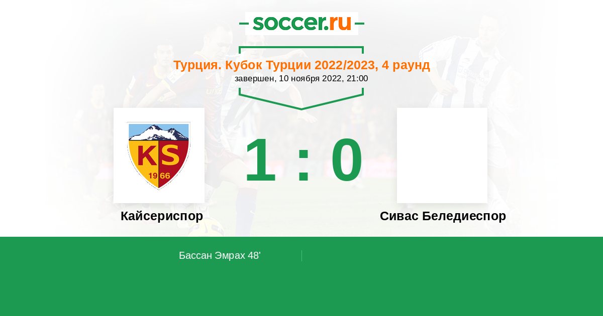 Протокол матча Кайсериспор против Сивас Беледиеспор