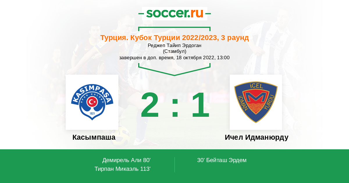 Протокол матча Касымпаша против Ичел Идманюрду