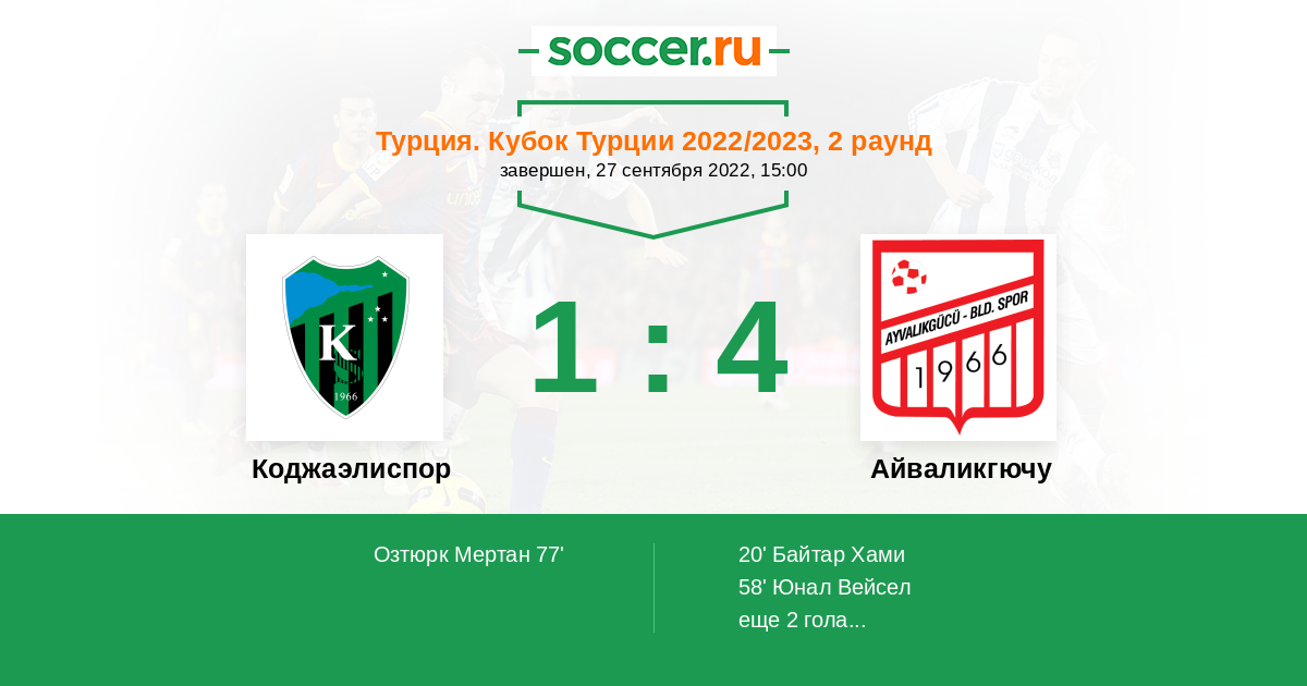 Протокол матча Коджаэлиспор против Айваликгючу