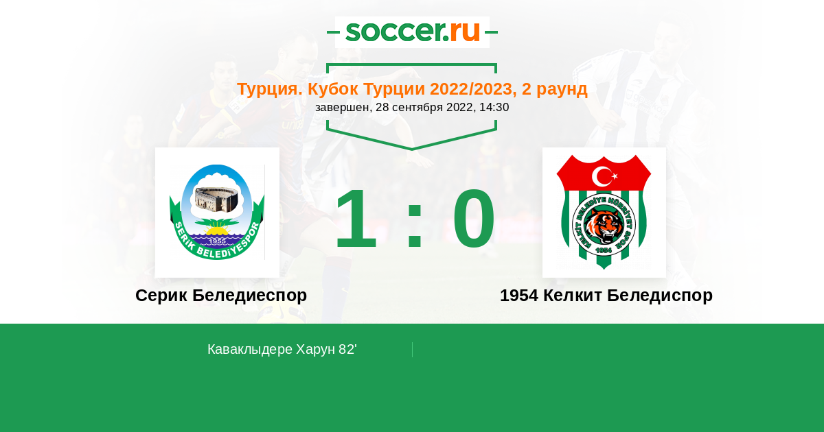 Протокол матча Серик Беледиеспор против 1954 Келкит Беледиспор